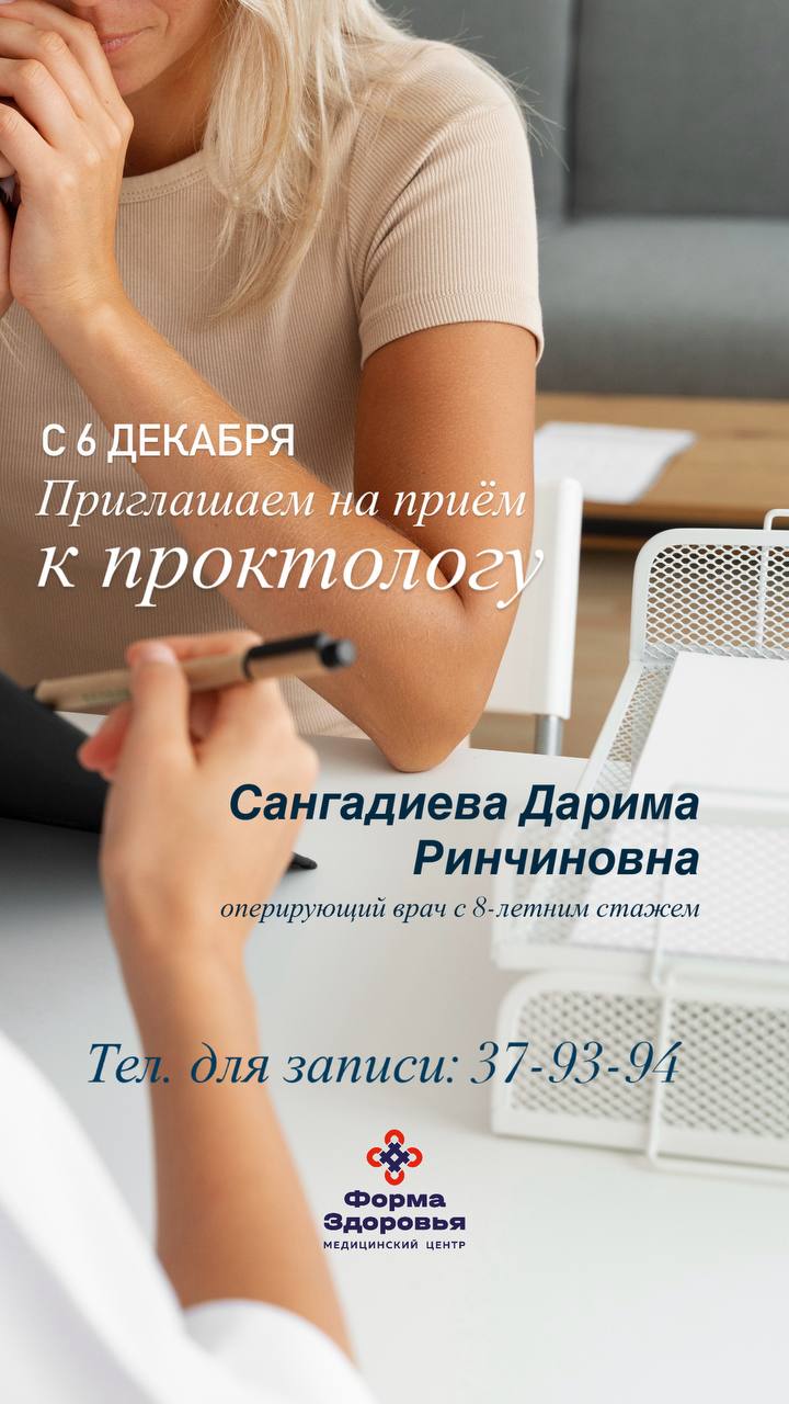 С радостью сообщаем о новом специалисте в нашей команде — враче-проктологе Сангадиевой Дариме Ринчиновне.
